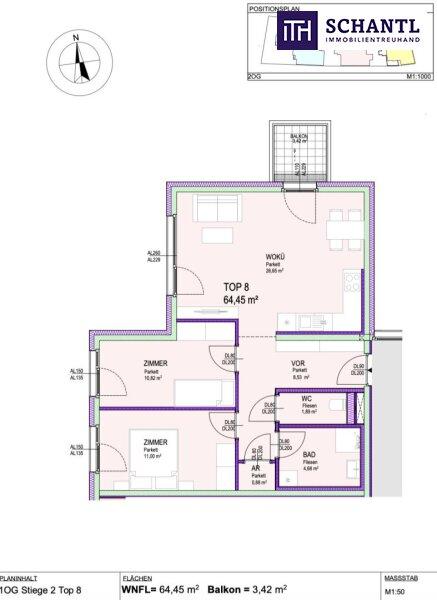 Wohnfläche: ca. 64,45 m² + Balkon: ca. 3,42 m² + Kellerabteil