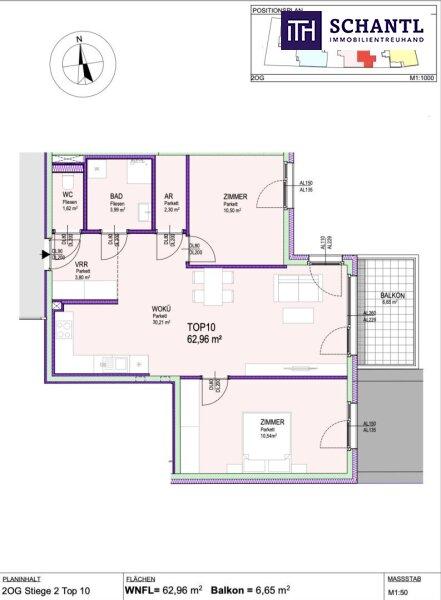 Wohnfläche: ca. 62,96 m² + Balkon: ca. 6,65 m² + Kellerabteil