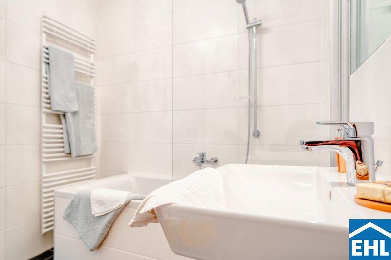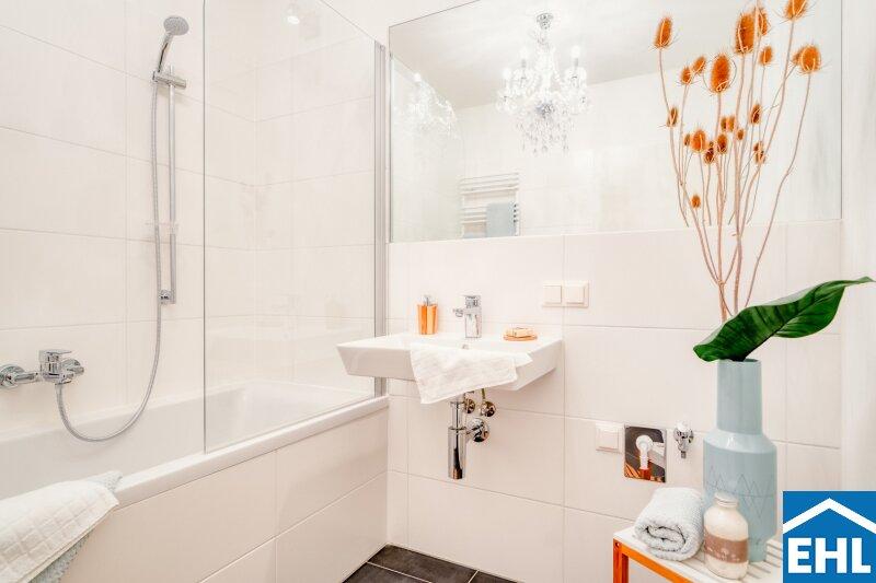 • Modern verflieste Sanitärräume mit Badewanne