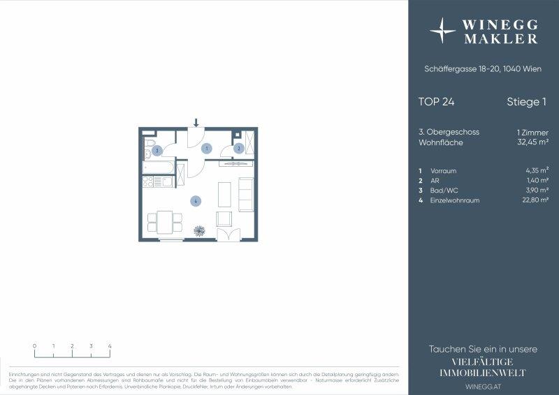 Diese traumhafte Garconniere verfügt über eine voll ausgestattete Küche und eine Wohnfläche von ca. 32 m2.