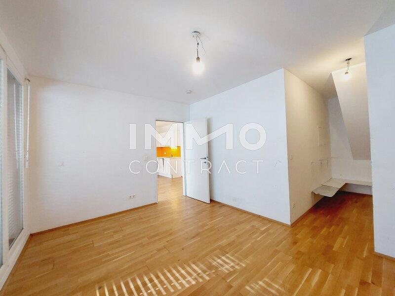 Das Schlafzimmer ist ruhig gelegen und bietet einen angenehmen Rückzugsort. Sowohl von der Wohnküche als auch von weiteren Bereichen der Wohnung sind die beiden Loggien zugänglich, die zusätzlichen Freiraum im Alltag schaffen und zum Entspannen im Freien einladen. Der kleine Garten rundet das Wohnangebot perfekt ab und bietet eine grüne Oase mitten in der Stadt.