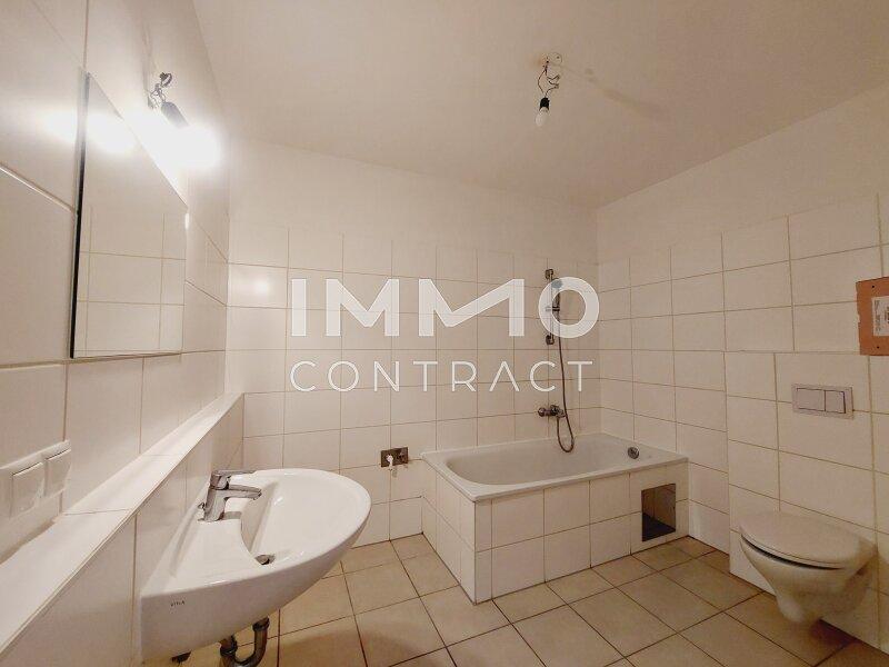 Das Badezimmer ist funktional gestaltet und mit einer Badewanne ausgestattet, das WC ist integriert. Ein praktischer Abstellraum innerhalb der Wohnung sorgt für zusätzlichen Stauraum.