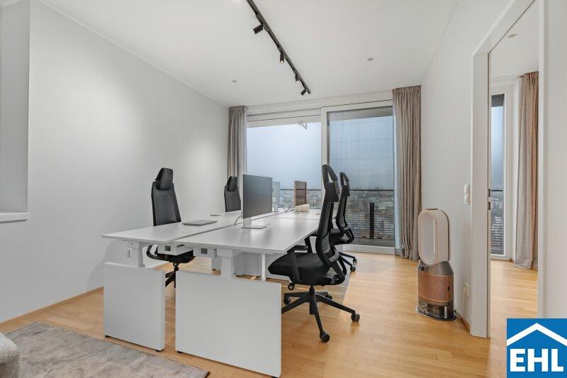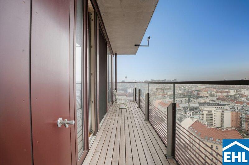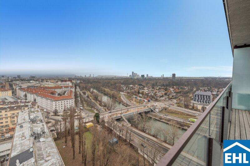 Lichtdurchflutet durch großzügige Fensterflächen eröffnet sie ein Panorama auf die Wiener Hausberge. Besonders in den Abendstunden, wenn die Sonne langsam hinter den Hügeln versinkt und den Himmel in warme Gold- und Rottöne taucht, entsteht ein beinahe magisches Schauspiel. Die großzügige Freifläche erweitert den Wohnraum ins Freie perfekt für stille Momente über den Dächern der Stadt.