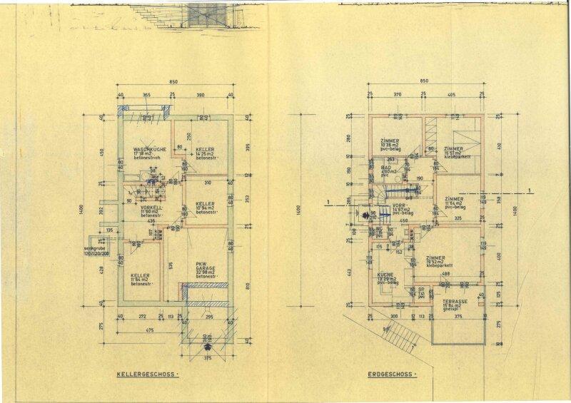 Es teilt sich im Erdgeschoß in 3 Zimmer, Wohnzimmer mit Ausgang auf die Terrasse,  Küche, Bad und WC und einen geräumigen Vorraum. Im Keller sind eine Waschküche, Garage, Heizraum, Holzlagerraum und ein Abstellraum.