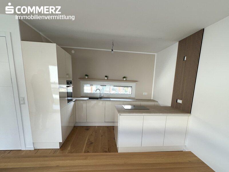 Im Obergeschoss erwarten Sie drei gut geschnittene Zimmer, darunter ein besonders großzügiges Hauptschlafzimmer mit praktischem Schrankraumbereich und Zugang zu einer kleinen, feinen Terrasse. Auch das Badezimmer präsentiert sich überdurchschnittlich groß und punktet mit angenehmem Tageslicht durch elegante Milchglasfenster.