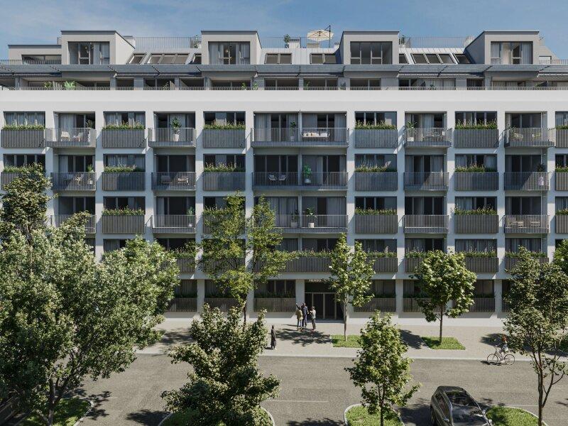 In einer verkehrsberuhigten Sackgasse und direkt am Arik-Brauer-Park gelegen entstehen 150 hochwertige Eigentumswohnungen mit Wohnflächen von ca. 30 m² bis 130 m², die für unterschiedlichste Lebensbedürfnisse und Wohnkonzepte ausgelegt sind. Die Wohnungen bieten attraktive Extras wie private Gärten, Balkone, Loggien und eine beeindruckende Panorama-Terrasse, die einen atemberaubenden 360° Panoramablick über Wien eröffnet. Mit großzügigen Raumhöhen schaffen wir ein offenes und luftiges Wohngefühl. Darüber hinaus stehen Tiefgaragenstellplätze zur Verfügung und moderne Energiekonzepte, wie Photovoltaik und Fernwärme, garantieren eine nachhaltige und effiziente Energieversorgung. Hier wohnen Sie stilvoll, zukunftsorientiert und überaus komfortabel.