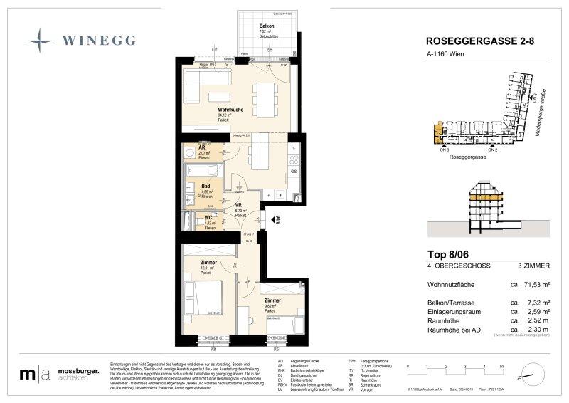 In der Roseggergasse 28, nahe des Wilhelminenbergs in 1160 Wien, entstehen insgesamt 124 exklusive Eigentumswohnungen. Die Wohnflächen variieren zwischen 39 und 245 m² und bieten zwischen 2 und 6 Zimmern. Darüber hin-aus bereichern private Freibereiche wie Eigengärten, Balkone, Terrassen, Loggien und spektakuläre Dachterrassen mit Blick auf die umliegenden Wiener Berge das Wohnerlebnis.