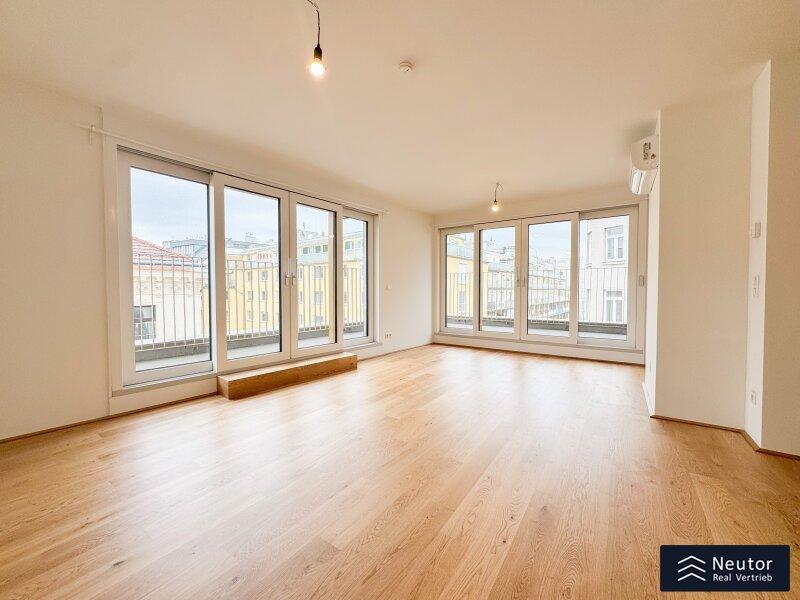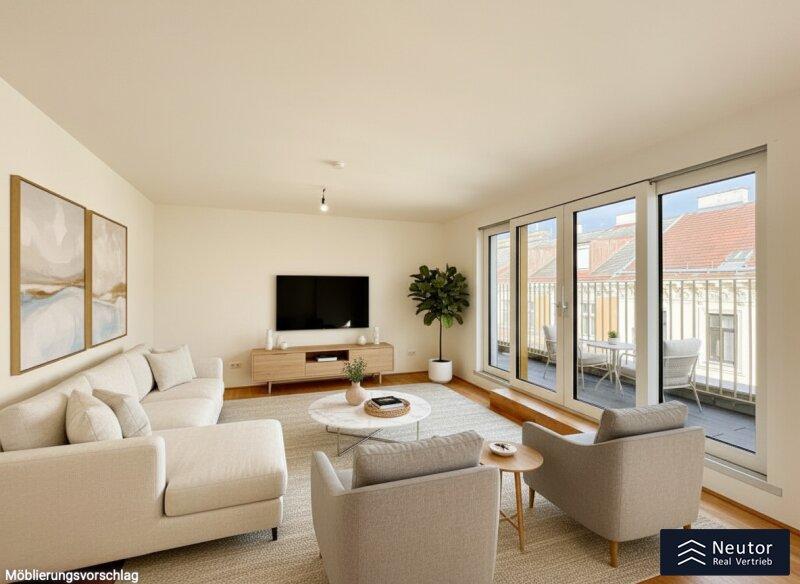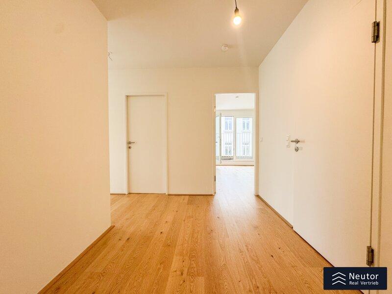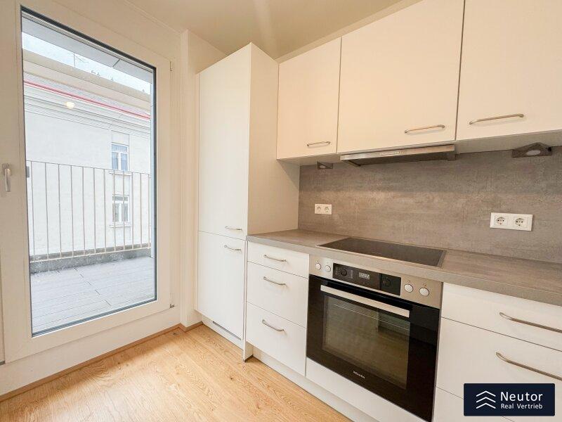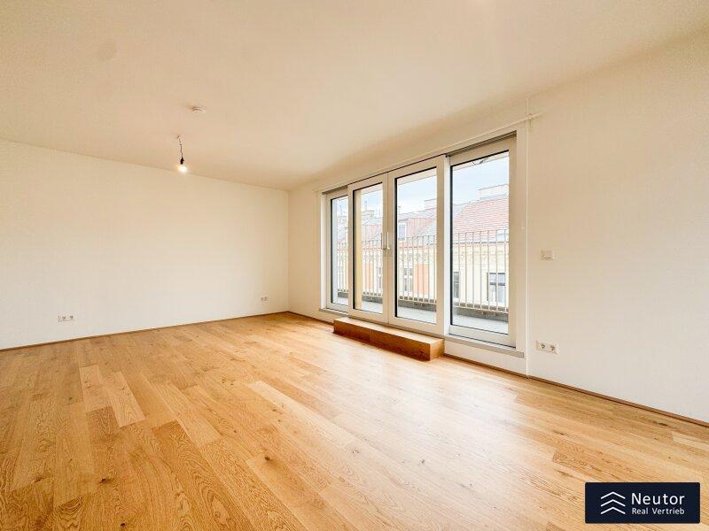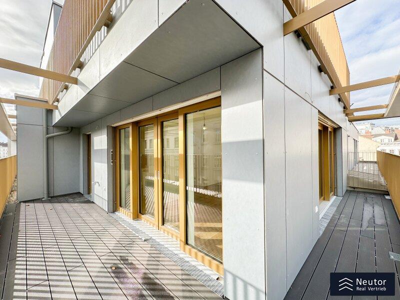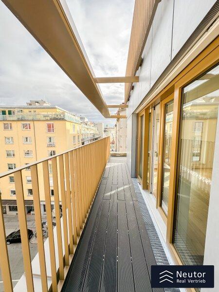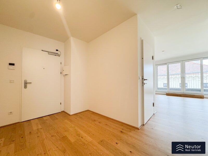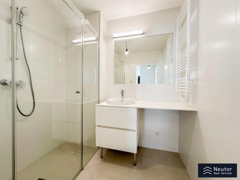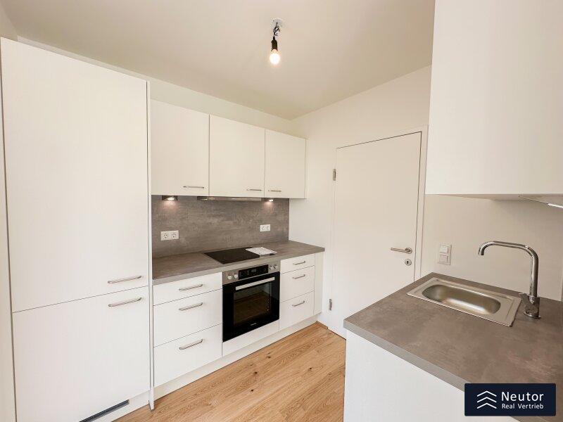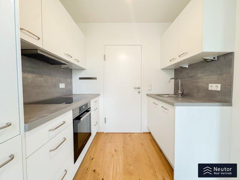 Diese stilvolle 2-Zimmerwohnung im 1. Dachgeschoss eines exklusiven Neubauprojekts präsentiert sich als hochwertiger Zweitbezug und überzeugt mit einer harmonisch abgestimmten, durchdachten Raumaufteilung. Bereits beim Eintreten empfängt Sie ein großzügiger Vorraum, der ausreichend Platz für eine elegante Garderobenlösung bietet und einen einladenden ersten Eindruck vermittelt. Von hier aus erschließen sich das modern gestaltete Badezimmer mit edlem Tischlereinbau und hochwertiger Walk-In-Dusche, sowie das separate WC. Das Herzstück der Wohnung bildet der lichtdurchflutete Wohn- und Essbereich. Die bodentiefen Fensterflächen lassen den Raum in natürlichem Licht erstrahlen und schaffen ein offenes und luftiges Wohngefühl. Die stilvolle Einbauküche integriert sich harmonisch in den Wohnbereich und überzeugt sowohl optisch als auch funktional - ideal für genussvolle Kochabende und gesellige Stunden. Das Schlafzimmer präsentiert sich als behagliche Rückzugsoase und bietet dank des außenliegenden Sonnenschutzes optimale Voraussetzungen für erholsame Nächte und höchsten Wohnkomfort. Ein ganz besonderes Highlight ist die knapp 18 m² große Terrasse, die den Wohnraum auf elegante Weise ins Freie erweitert. Sie lädt dazu ein, warme Sommertage und laue Abende in entspannter Atmosphäre zu genießen; sei es beim Frühstück in der Morgensonne oder bei einem Glas Wein zum stimmungsvollen Tagesausklang.