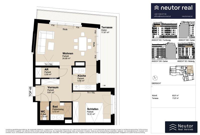 Monatliche Bruttomiete: € 1.600,00 inkl. Betriebskosten und gesetzlicher USt.