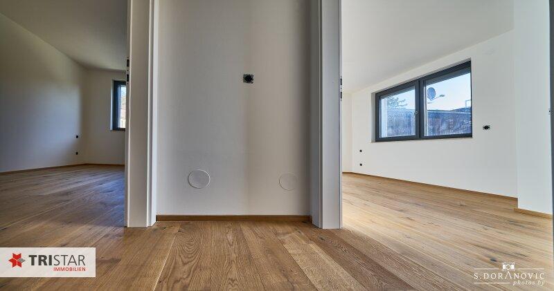 Weiters zählen zur hochwertigen Ausstattung: KLIMAANLAGE, Eichenparkettböden, keramischer Fliesen-Belag/Feinsteinzeug, Garten mit Rollrasen, etc.