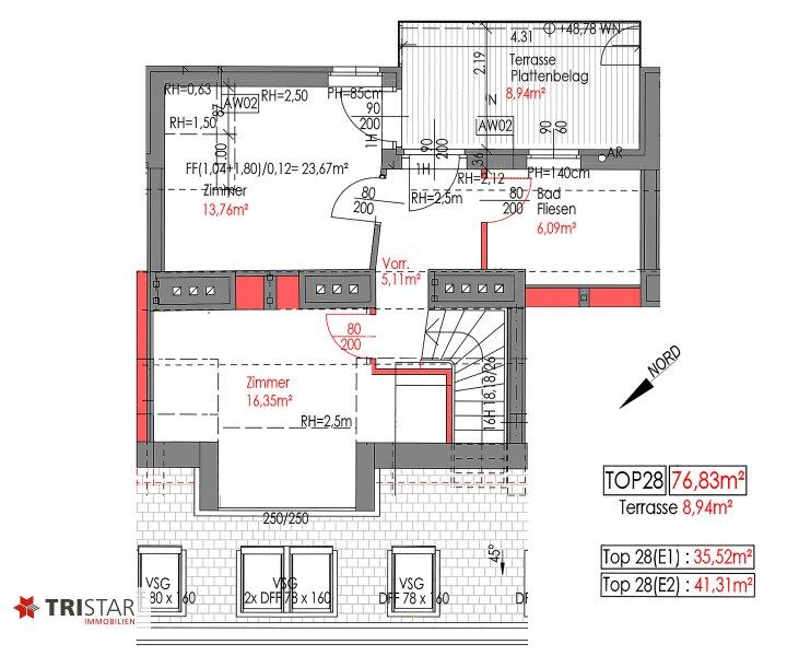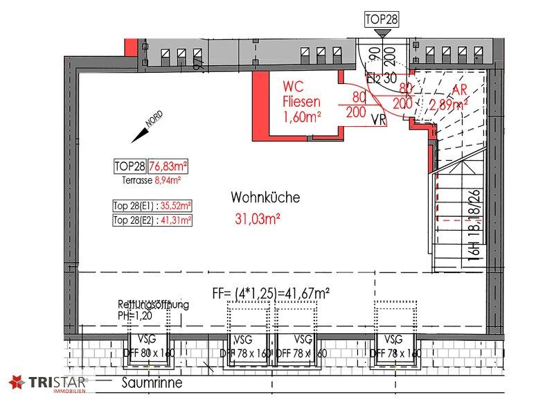 - Top 28: Wohnfläche ca. 77 m² + Terrasse ca. 9 m², EUR 599.000,-