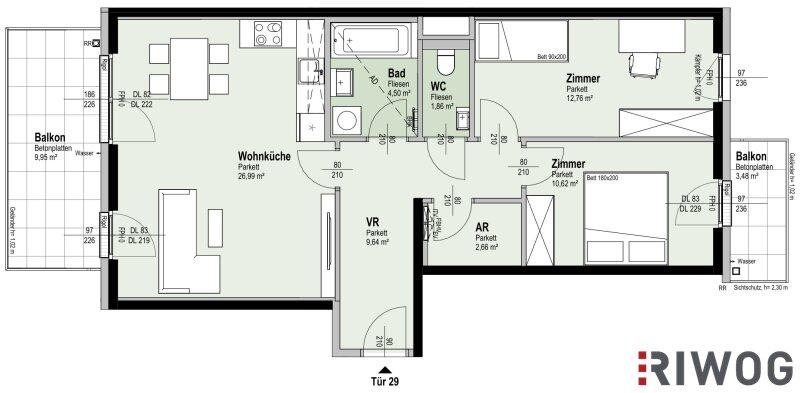 • Energieklasse A/Niedrigenergiehaus (HWB 22,90 kWh/m2a, fGEE: 0,71)