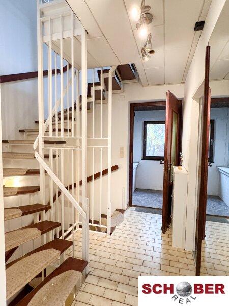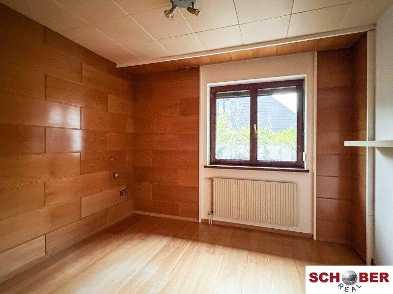 Das Erdgeschoss empfängt Sie mit einem einladenden Vorraum und hellem Stiegenhaus. Von hier aus betritt man das Herzstück des Hauses, das helle Wohnzimmer mit Ausgang in den Vorgarten. Im Winter schafft ein Kamin behagliche Atmosphäre. Vom Vorraum aus sind weiters begehbar: die Küche, das Badezimmer mit Wanne, das separate WC, sowie ein Schlafzimmer. Das zweite Schlafzimmer auf dieser Ebene wird derzeit als Arbeitszimmer genützt und ist vom Wohnzimmer aus begehbar.