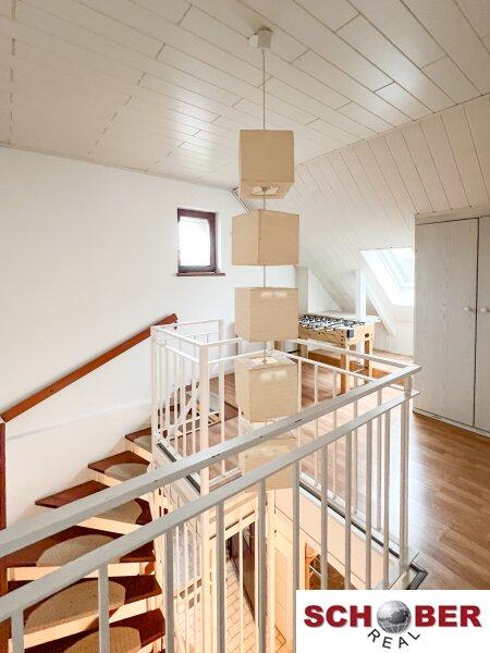 Über eine schöne Treppe gelangen Sie in das Obergeschoss, das mit einem großzügigen, lichtdurchfluteten Vorraum und viel Stauraum punktet. Auf dieser Ebene befinden sich zwei weitere Schlafzimmer, ein großes Tageslicht-Badezimmer mit Wanne und WC sowie eine verglaste Loggia, die von beiden Schlafzimmern aus zugänglich ist.