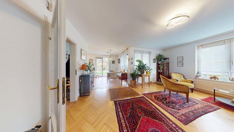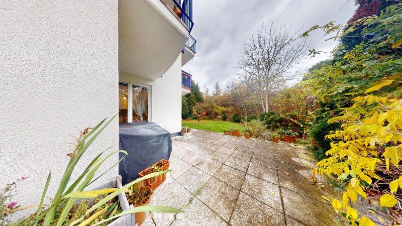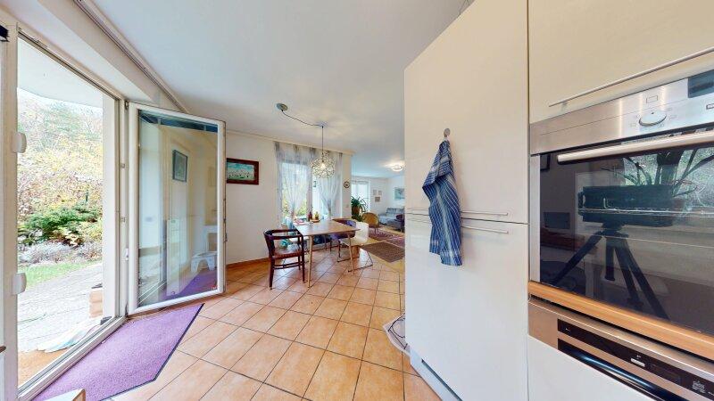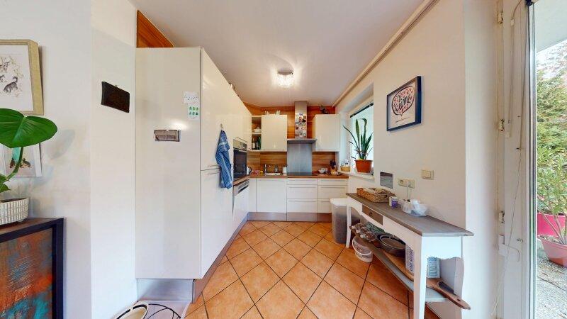Fühlt sich an wie Leben im eigenen Haus - die Wohnung hat insgesamt über 67qm Wohnfläche, 44qm Terrasse und c. 220qm Garten und ist damit etwas ganz Besonderes. Sie verfügt über einen Grundriss, der ein sehr offenes Raumgefühl ergibt. Zentraler Teil der Wohnung ist ein grosszügiges, tailliertes Wohnzimmer mit einer offenen Küche, wo Wohnbereich, Essbereich und Küche fliessend ineinander übergehen. Daneben gibt es noch ein Schlafzimmer, ein Bad mit Dusche und Waschmaschinenanschluß, eine separate Toilette und einen Abstellraum. Verbunden sind die zentral begehbaren Räumlichkeiten durch ein grosszügiges Vorzimmer und einen Flur. Einzigartig wird die Wohnung durch ihre phantastischen Freiflächen, einer wirklich großen Terrasse und einem einzigartigem Garten, die die ganze Wohnung umschließen und ein Wohngefühl wie in einem eigenen Haus ergeben.