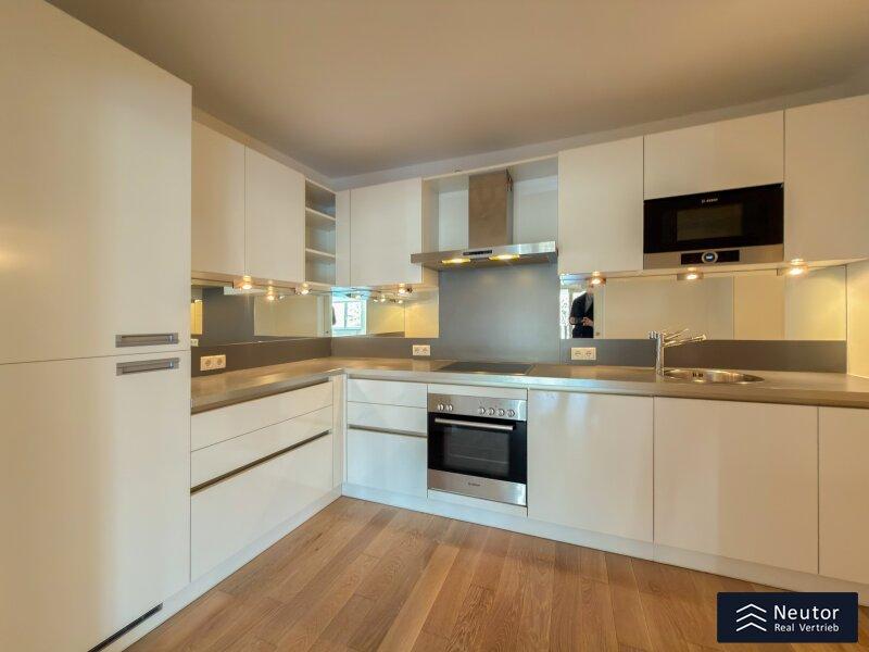 - Exklusive Ausstattung: Vollholzparkett, Einbauküche