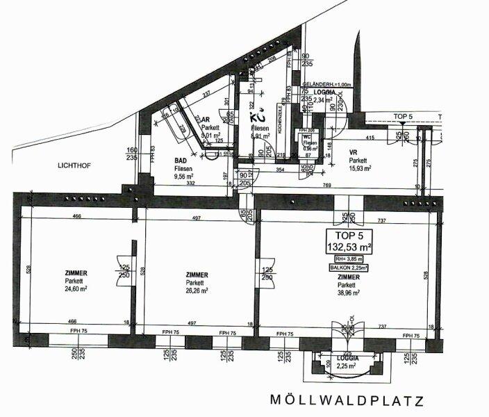 MÖLLWALDPLATZ, U1-Nähe, 133 m2 Altbau mit Loggia, 3 Zimmer, Extraküche, 2 Loggia, Wannenbad, Parketten, 1. Liftstock - Objektnr. 5645876