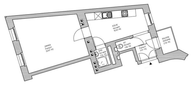 TANBRUCKGASSE, UNBEFRISTET, 37 m2 Altbau mit 3 m2 Balkon, 1 Zimmer, Küche, Duschbad, Parketten, Bahnhof Meidling - Objektnr. 5645978
