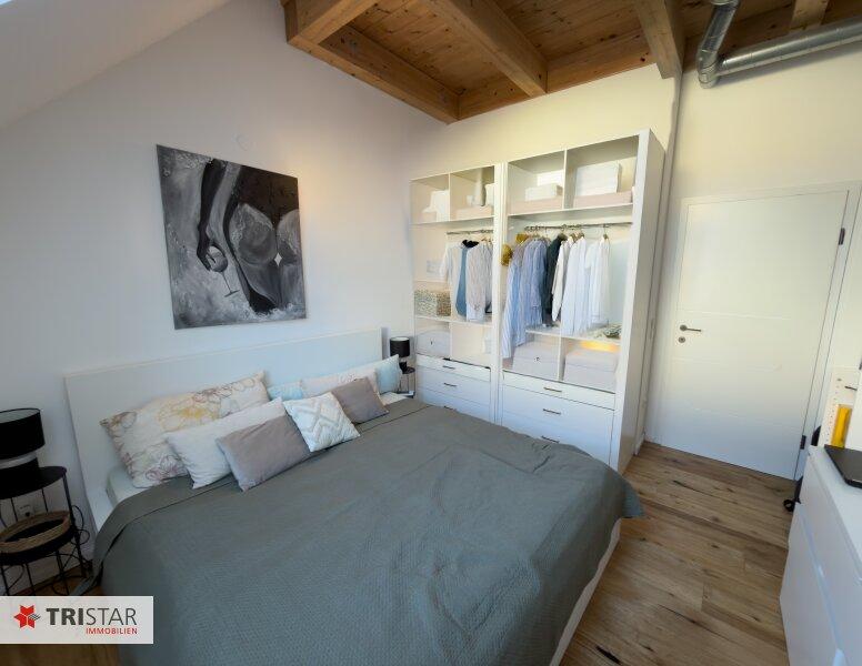 Diese außergewöhnliche Dachgeschosswohnung in der Josef-Wolfik-Straße 25, 2000 Stockerau verbindet moderne Architektur mit warmen Materialien und einem einzigartigen Raumgefühl.