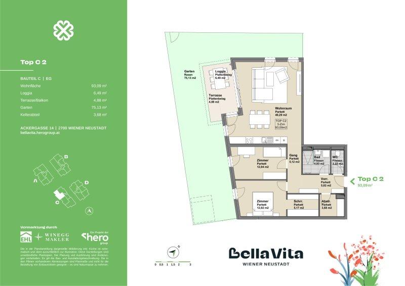 Das Wohnbauprojekt Bella Vita nahe des verzaubernden Wiener Neustädter Kanals steht für "schönes Leben" und das wird hier möglich. Im mediterranen Stil die Außen- und Allgemeinflächen: Gepflasterte Wege in Muschelkalk, Lauben und Schaukeln vermitteln Leichtigkeit, Gemütlichkeit und Wohlgefühl. Im Inneren überzeugende Raumaufteilung, stimmige Architektur, hochwertige Ausgestaltung. Und die Nachhaltigkeit stets im Blick, u.a. durch PV-Anlagen zur Energiegewinnung und einem Dachgeschoß in Holzhybridbauweise.