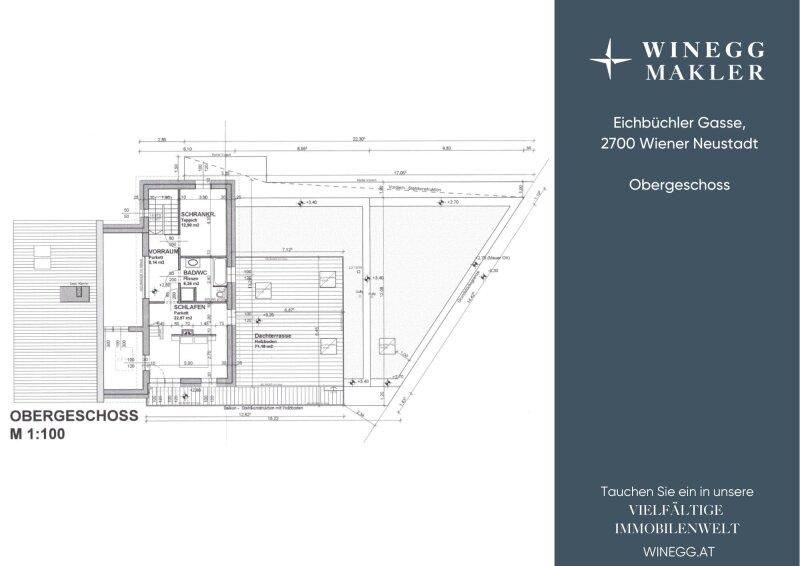 - Wir verlassen das Erdgeschoß (ca. 120 m2) und gelangen über eine dem Objekt noch mehr Leichtigkeit verleihende Glastreppe in das Obergeschoß (ca. 52 m2). Hier gibt es drei Räume: Neben dem selbstverständlich mit Fenster ausgestatteten Badezimmer mit Eckwanne, Dusche und WC zwei weitere Zimmer.