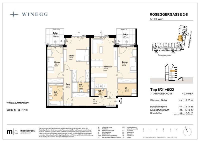 In der Roseggergasse 28, nahe des Wilhelminenbergs in 1160 Wien, entstehen insgesamt 124 exklusive Eigentumswohnungen. Die Wohnflächen variieren zwischen 39 und 245 m² und bieten zwischen 2 und 6 Zimmern. Darüber hin-aus bereichern private Freibereiche wie Eigengärten, Balkone, Terrassen, Loggien und spektakuläre Dachterrassen mit Blick auf die umliegenden Wiener Berge das Wohnerlebnis.