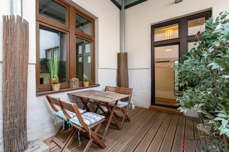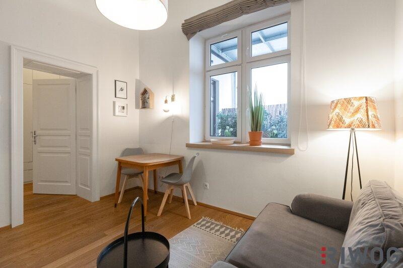 Einziehen und wohlfühlen: Diese durch eine Interior-Designerin liebevoll eingerichtete, komplett hofseitige Altbauwohnung unweit des Schlossquadrates ist ein echtes Rückzugsrefugium mitten in der Stadt. Auf ca. 42,6 m² Wohnfläche vereinen sich stilvolles Design und eine durchdachte Raumaufteilung zu einem Zuhause mit besonderem Charme. Das gemütliche Wohn-/Schlafzimmer mit offen abgetrenntem Schlafbereich, die separate, voll ausgestattete Küche, der Vorraum mit praktischer Schranknische inkl. Einbauschrank und das elegante Bad mit großer Walk-in-Dusche schaffen eine komfortable Wohlfühoase. Die Innenhofterrasse lädt zum Entspannen und zu einer kleinen Auszeit vom Trubel der Stadt ein und macht diese Wohnung zu einem besonderen Highlight. Der Echtholzparkettboden, die angenehme Fußbodenheizung und die Raumhöhe von bis zu ca. 3,5 m schaffen eine warme, einladende Atmosphäre. Die im Erdgeschoss befindliche Wohnung wurde 2015 geschmackvoll saniert und befindet sich in einer gepflegten Liegenschaft mit bereits ausgebautem Dach.