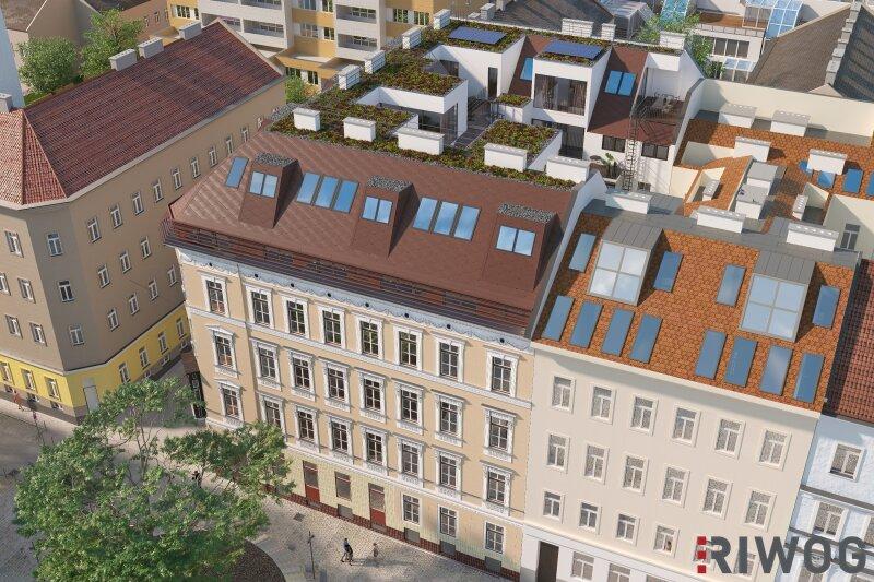 In attraktiver Lage des 15. Wiener Gemeindebezirks entsteht in der Haidmannsgasse 2 ein hochwertiger Dachgeschoss-Ausbau mit 7 exklusiven Wohnungen. Das stilvolle Eckzinshaus am Platz Maria vom Siege verbindet urbanes Leben mit ruhigem Wohnkomfort.