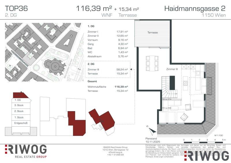 TOP 36 befindet sich im Dachgeschoss, ist als Maisonette ausgeführt und gliedert sich wie folgt auf: