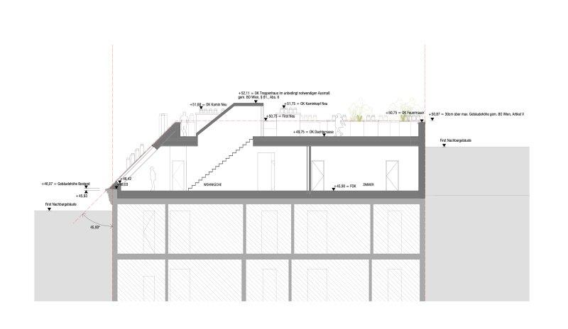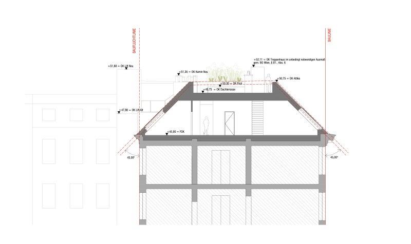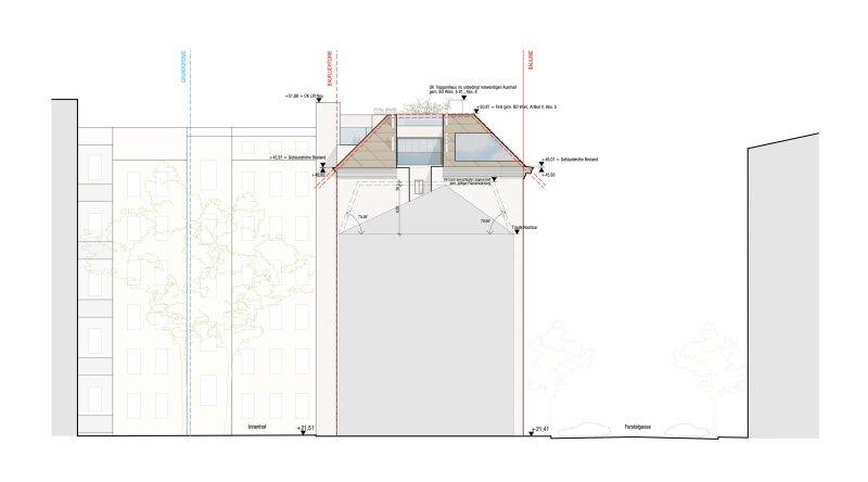 Inmitten dieser historischen Kulisse entsteht Ferstels Ausblick: ein Dachgeschoss, das sich nicht aufdrängt, sondern respektvoll in die Architektur einfügt. Ein Refugium über der Stadt, in dem Materialität, Proportion und Architektur eine ruhige, zeitlose Sprache sprechen.