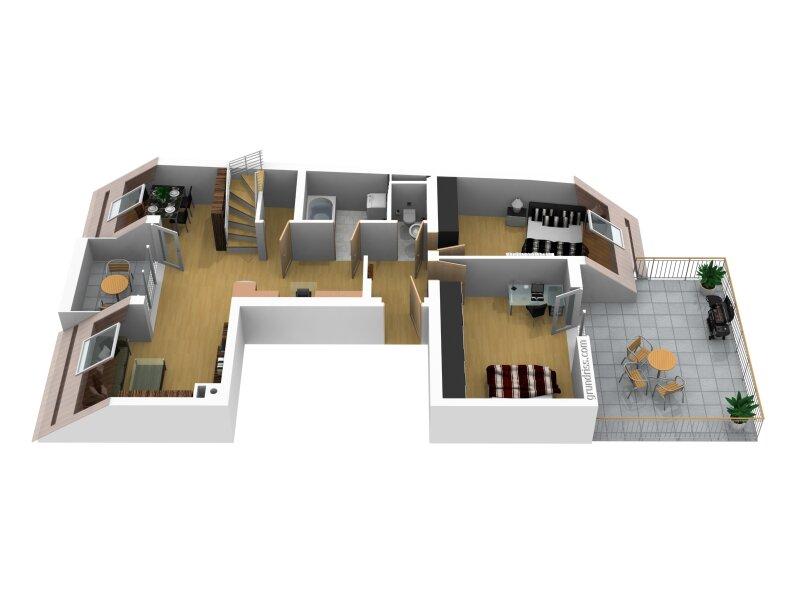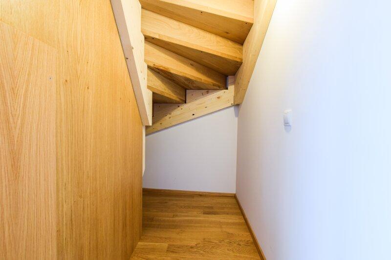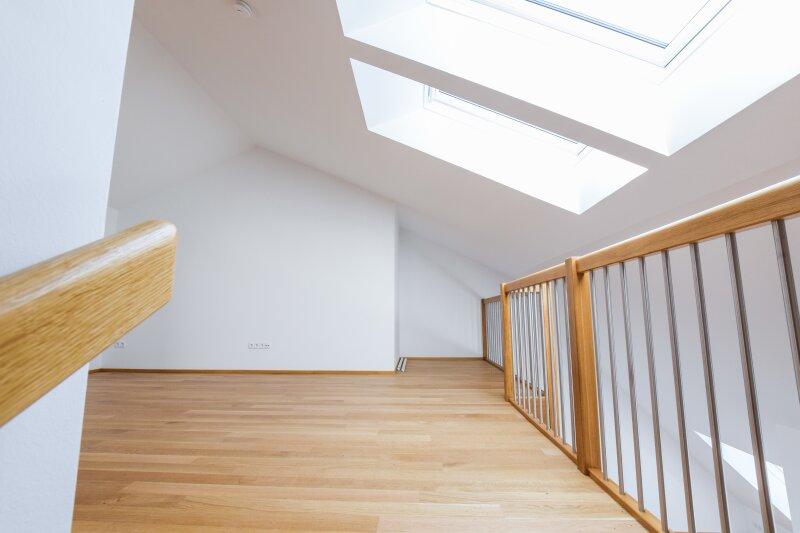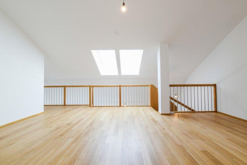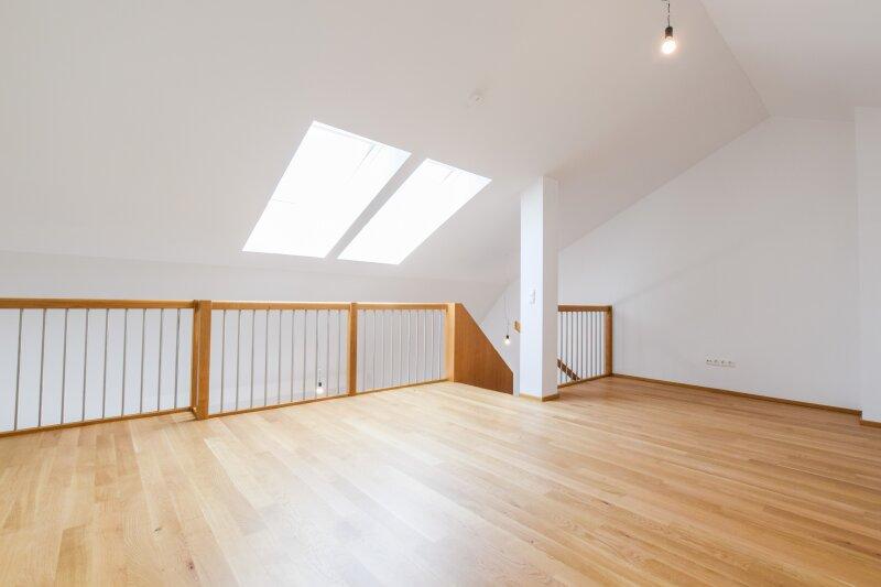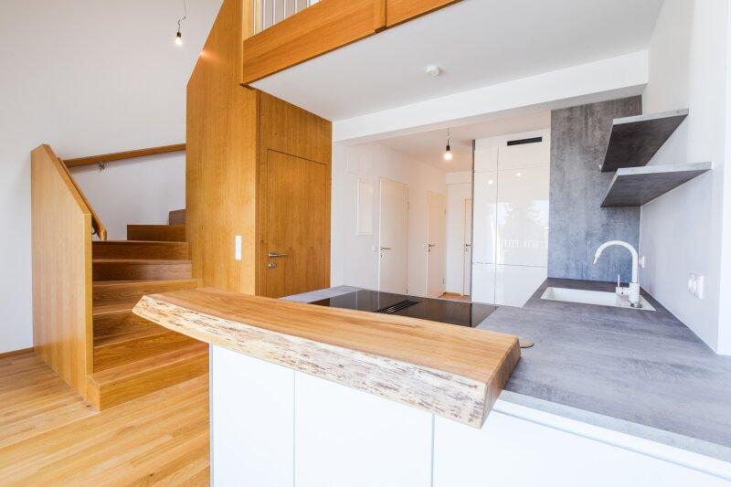 Die teilmöblierte Wohnung weist eine Wohnfläche von ca. 114 m² - aufgeteilt auf 2 Geschoße - sowie zwei Terrassen mit insgesamt ca. 25m² auf. Der Grundriss im 1. Dachgeschoß unterteilt sich in einen Vorraum, ein Badezimmer mit bodenebener Dusche, Waschtisch und Waschmaschinenanschluss, ein separates WC, zwei Schlafzimmer (davon eines mit Zugang zur ost-seitigen Terrasse) sowie eine großzügige Wohnküche mit Zugang zur west-seitigen Terrasse. Die traumhafte Tischlerküche mit hochwertigen Geräten der Marke Miele lädt zum Kochen ein. Insbesondere der Induktionsherd mit in der Kochplatte integriertem Dunstabzug bildet ein Highlight dieser tollen Küche. Der Neupreis der Küche beträgt ca. 24.000€. Auch bietet die Küche ausreichend Stauraum, da die Küchenzeile um die Ecke (Richtung Wohnzimmer) erweitert wurde. Weiteren Stauraum finden Sie im Abstellraum unter der hochwertigen Eichenholz-Treppe, welche von der Wohnküche auf die Galerie im 2. Dachgeschoß führt. Die Galerie bildet ein weiteres Highlight der Wohnung und wird durch großzügige Dachflächenfenster mit Licht durchflutet. Die Galerie führt in einen abgetrennten Dachbodenbereich mit ca. 26 m2, welcher zwar nicht zur Wohnfläche zählt, aber dennoch gleichwertig genutzt werden kann.