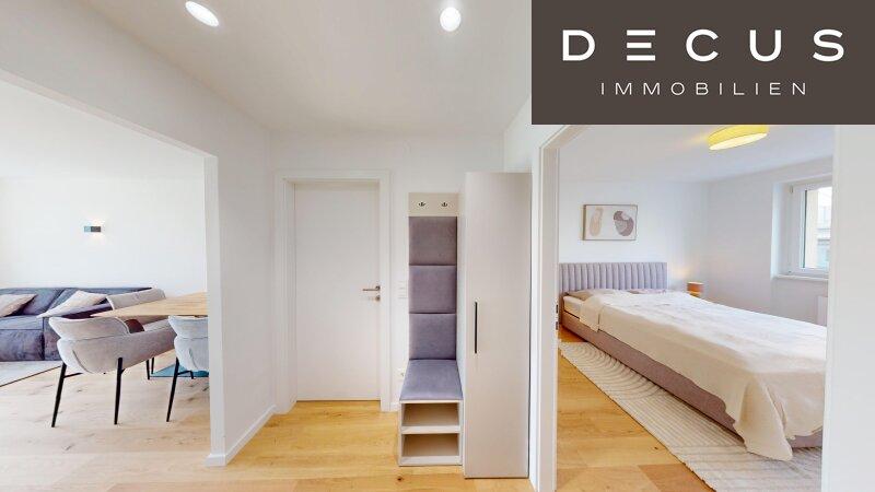 Die Designerküche ist voll ausgestattet inklusive Induktionsherd und hochwertigen Geräten und fügt sich harmonisch in den offenen Wohnbereich ein. Wohnzimmer sowie ein Schlafzimmer sind bereits stilvoll möbliert; im Kaufpreis inkludiert sind die Küche und Badmöbel, die übrige Einrichtung ist nicht Bestandteil des Kaufpreises.