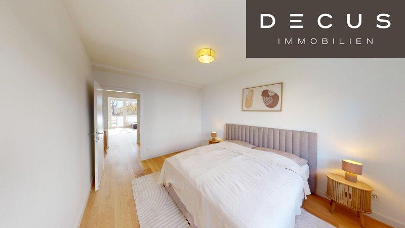 Die drei Schlafzimmer liegen ruhig zum Innenhof und bieten ein angenehmes Wohnklima während das südseitige Wohnzimmer mit Loggia durch den herrlichen Grün- und Weitblick über den Schweizergarten bis hin zum Arsenal begeistert.