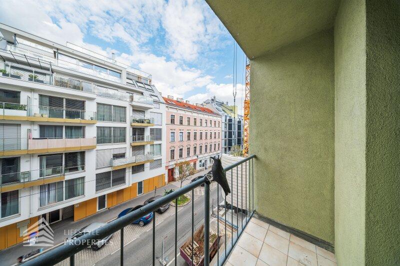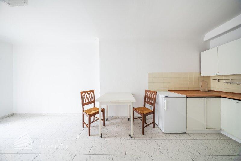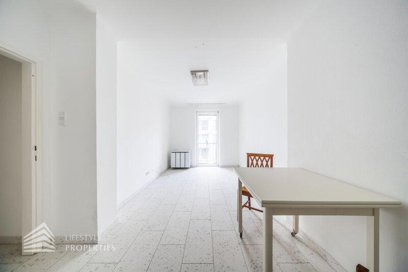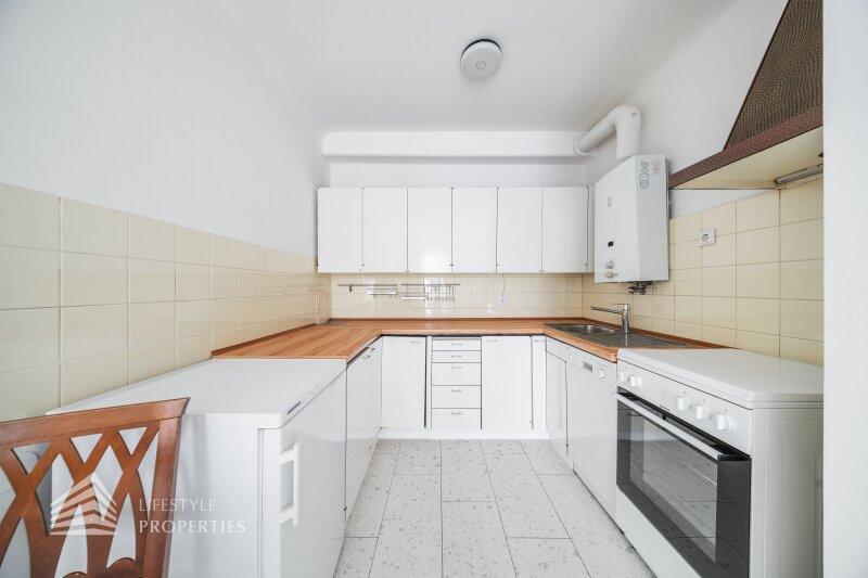 Das Herzstück der Wohnung bildet die Wohnküche: Der Wohnbereich mit rund 13 m² geht harmonisch in die separate Kochnische über, wodurch eine angenehme Trennung von Kochen und Wohnen entsteht. Von hier aus gelangen Sie direkt auf die rund 3 m² große Loggia ein charmanter Außenbereich für entspannte Stunden im Freien.