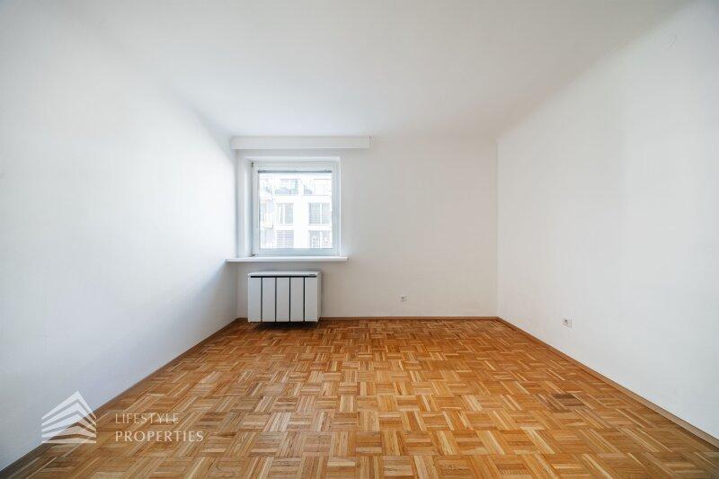 Beim Betreten der Wohnung empfängt Sie ein rund 5 m² großes Vorzimmer, von dem aus alle Räume zentral begehbar sind ein klar strukturierter Grundriss, der sowohl funktional als auch angenehm zu möblieren ist. Rechter Hand befinden sich das separate WC sowie das Badezimmer, beide kompakt und praktisch angeordnet. Vis-à-vis eröffnet sich das großzügige Schlafzimmer mit ca. 20 m², das viel Platz für individuelle Gestaltung und ruhige Rückzugsmomente bietet.