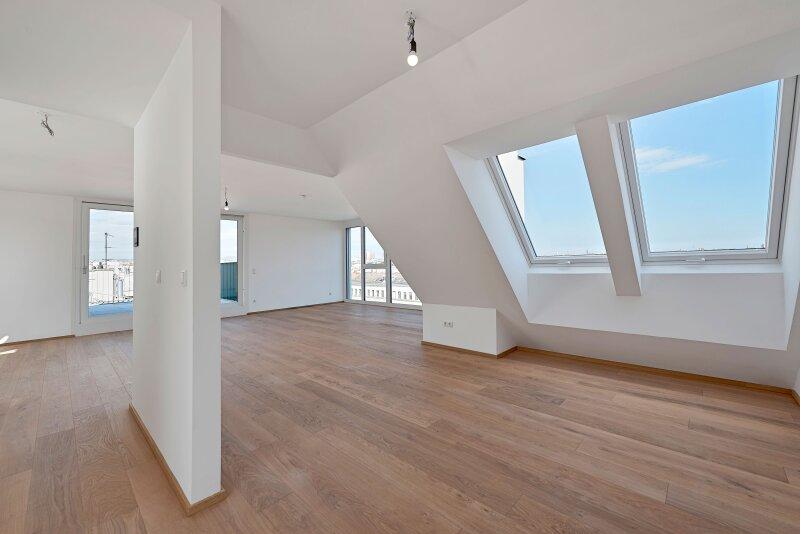 Die zwei Schlaf- bzw. Arbeitszimmer sind sehr geräumig und haben auch jeweils zwei großflächige Dachfenster, wodurch der traumhafte Eichenholz Parkett besonders gut zur Geltung kommt.