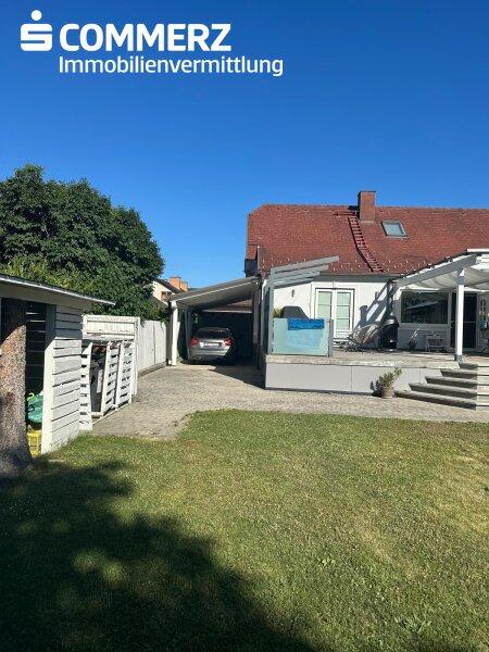 Die L-förmige Bauweise sorgt für eine angenehme Abschirmung zur Siedlungsstraße, wodurch die Liegenschaft von außen nahezu uneinsichtig ist. Bereits bei der Zufahrt empfängt Sie ein praktisches Carport, das bequemes Parken direkt am Haus ermöglicht.