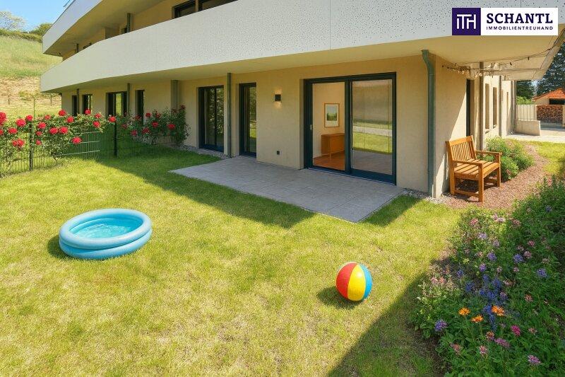 FRÜHJAHRSAKTION! Barfuß ins Gras. Direkt vom Wohnzimmer aus. Den Sommer bereits im eigenen Garten verbringen! TOP Neubauwohnung mit viel Freiraum! 3 Zimmer + Grün wohin das Auge reicht + Luftwärmepumpe!
