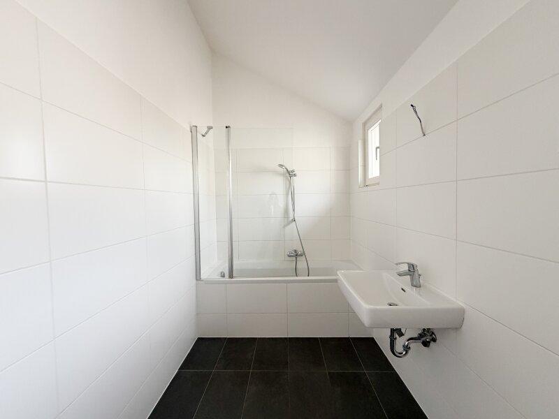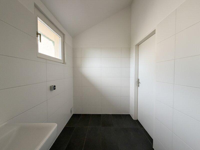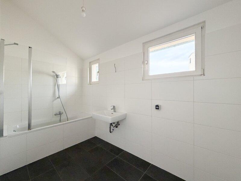 - Badezimmer mit Wanne, Fenster und Waschmaschinenanschluss