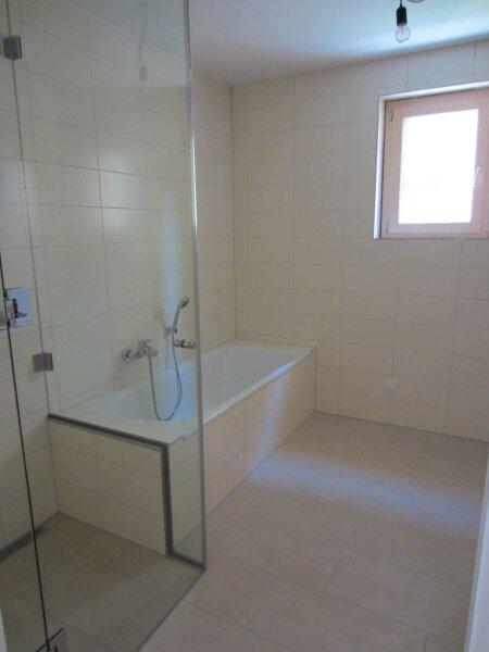 Wohnküche mit AEG Geräten; Bad mit Wanne und Dusche, Spiegelschrank, Waschmaschinenanschluss, WC; separates WC mit Handwaschbecken; Balkon mit 9,75 m² (Betonplatten) und Abstellraum; Außenrollos (elektrisch); Terrasse mit Kalksteinplatten, Gang mit Gegensprechanlage und Sicherheitstüre, alle Wohn- und Schlafräume mit Parkett, Telekabelanschluss; Die Wohnräume sind mit schönem Parkettboden, die Sanitärräume sauber verfliest.