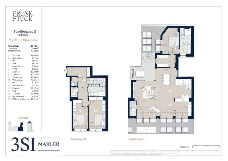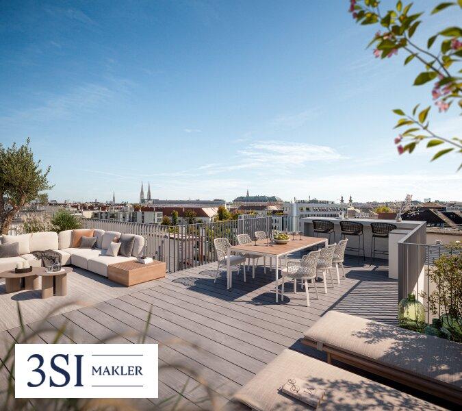 Diese exklusive Dachgeschoss-Maisonette mit traumhafter Dachterrasse ist das Highlight des Wohnprojekts. Auf knapp 184m² m² Wohnfläche und mit 4 großzügigen Räumen setzt es neue Maßstäbe in Architektur und Stil. Hier, hoch über den Dächern Wiens, vereinen sich historische Eleganz und futuristischer Luxus zu einem einzigartigen Wohnerlebnis, das höchsten Komfort bietet.