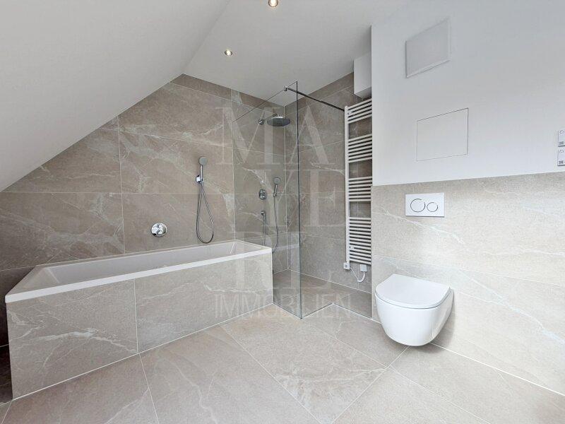 o Nassräume mit großflächige, moderne Fliesen und Markenarmaturen