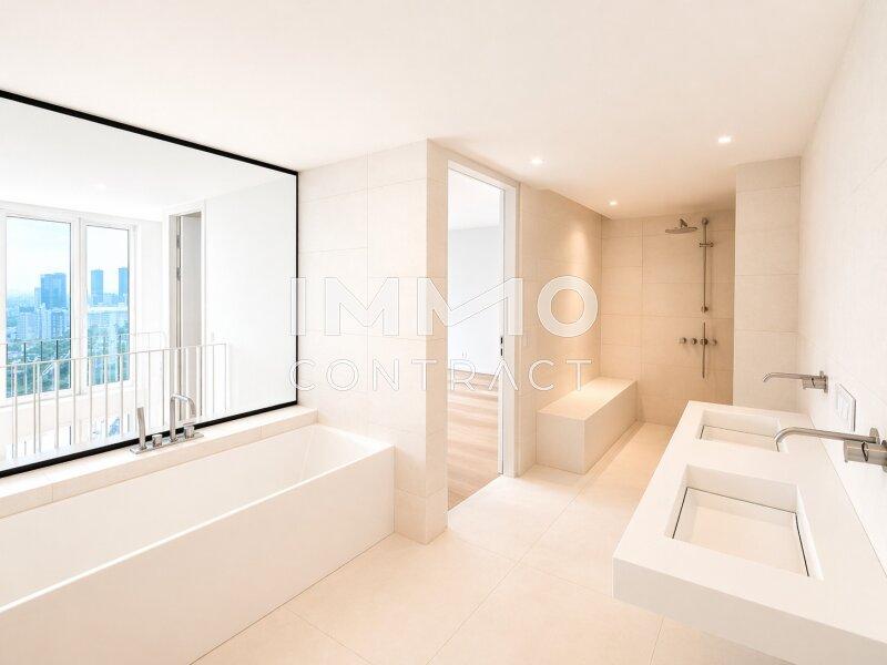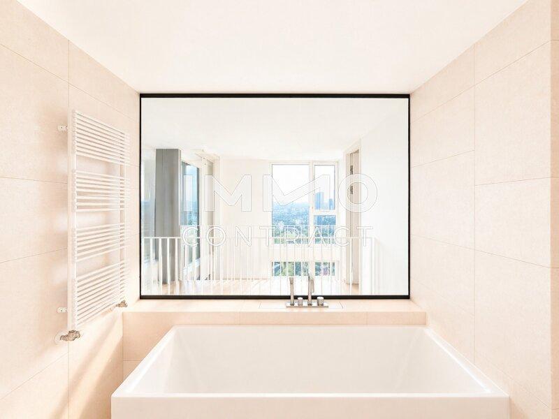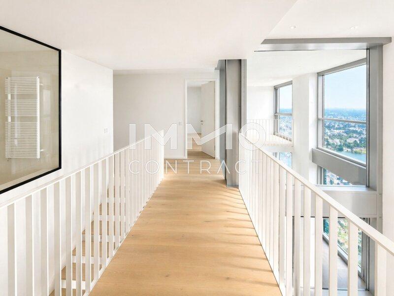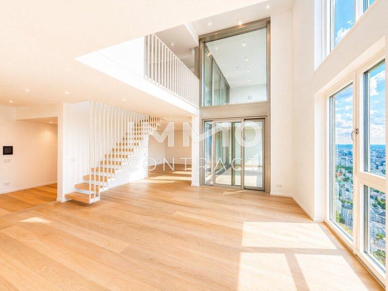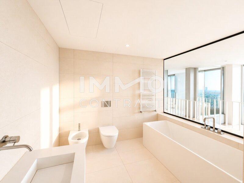 Im Wohnturm befinden sich rund 300 Wohnungen in unterschiedlichen Größen, aufgeteilt in vier Ausstattungskategorien. Die wenigen noch verfügbaren Einheiten verfügen über 2-4 Zimmer und sind zwischen ca. 46 m² - ca. 215 m² groß. Sämtliche der verfügbaren Eigentumswohnungen befinden sich im 22. 32. Stockwerk und überzeugen mit der hochwertigen Ausstattungslinie Sky Living (22. - 30. OG), wobei sich die Penthouse-Etagen (31. - 32. OG) nochmals in Ihrer Beschaffenheit abheben.