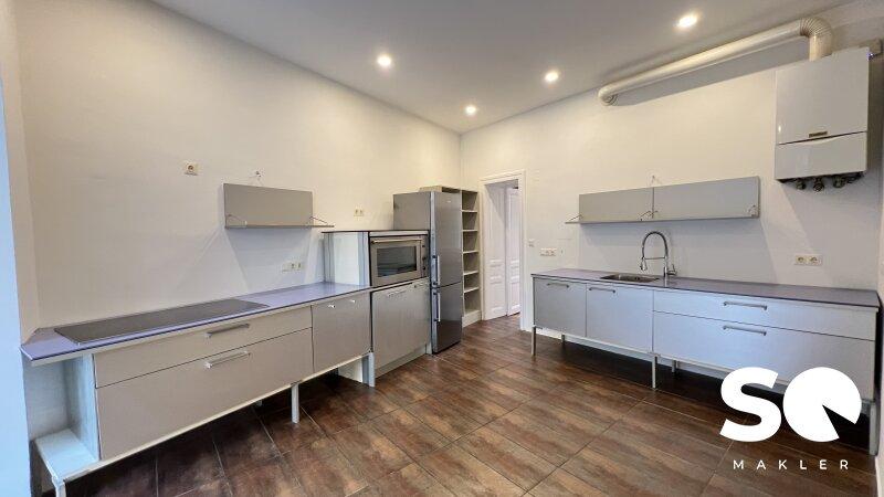 Die große Küche ist nicht nur perfekt für passionierte Köche, sondern bietet auch ausreichend Platz für einen Esstisch. Von hier aus gelangen Sie in den ruhigen Innenhof, wo Sie die Möglichkeit haben, ein kleines Essplätzchen im Freien zu gestalten. Ideal für gemütliche Mahlzeiten oder einen Kaffee am Morgen.