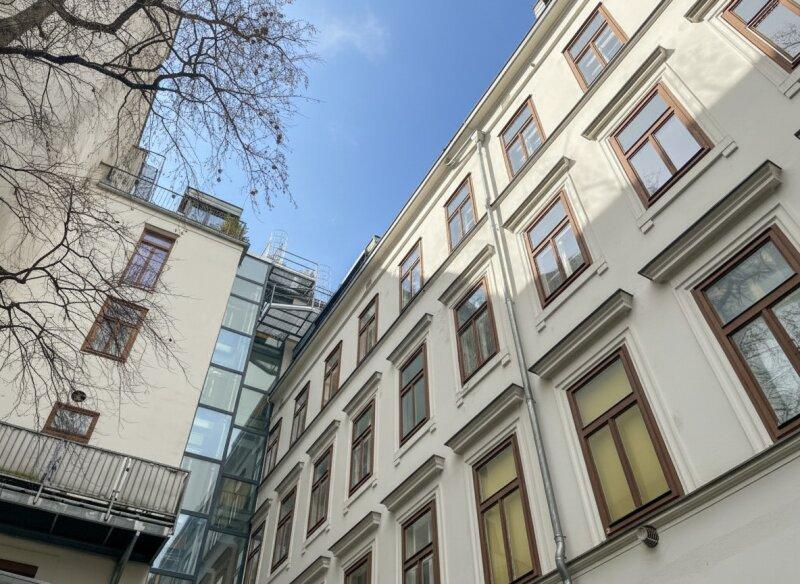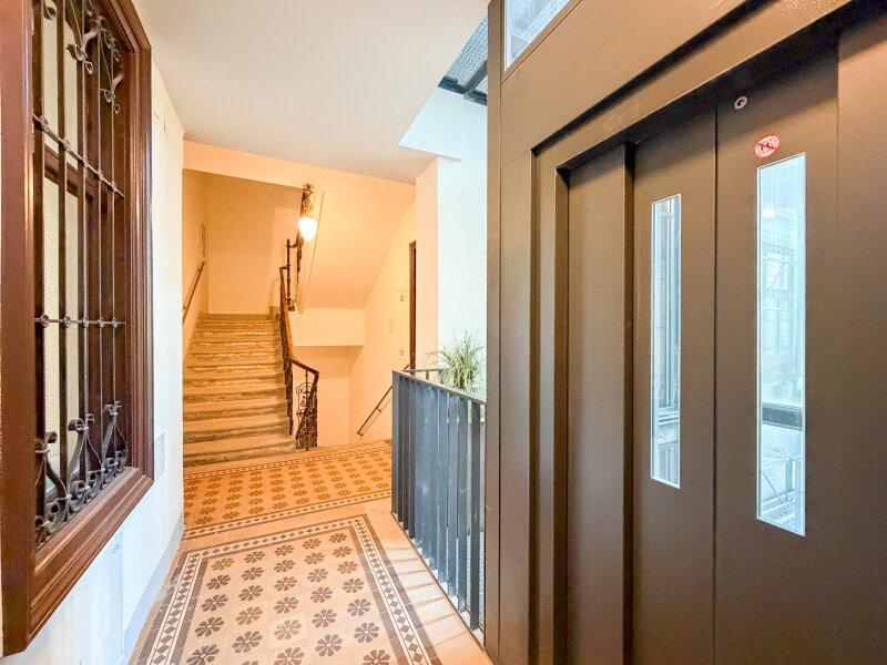 Schon beim Betreten des Hauses spürt man die besondere Atmosphäre: ein gepflegtes Altbaugebäude mit Lift (barrierefrei erreichbar), Kinderwagen- und Fahrradabstellraum im Erdgeschoß sowie bereits ausgebautem Dachgeschoß.