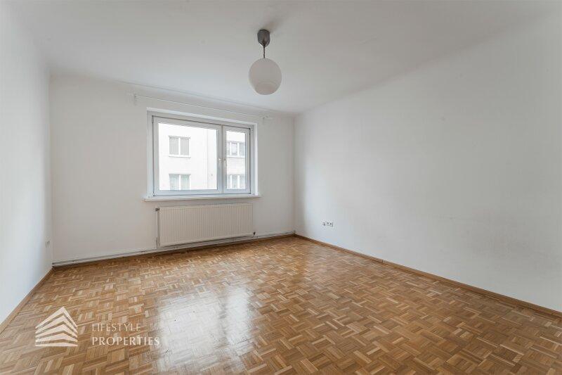 Die Wohnung befindet sich im 5. Stock eines im Jahre 1970 erbauten Wohngebäudes und ist bequem über einen Lift erreichbar. Die Wohnfläche von ca. 69 m² teilt sich auf in 2 Zimmer, eine Küche, einen Vorraum, eine Badezimmer und ein separates WC. Im Wohnhaus befinden sich ein Waschraum, Kellerräume sowie eine Garage. Beheizt wird mittels Gas-Etagenheizung. Als Highlight zählt der inkludierte Garagen-Stellplatz.