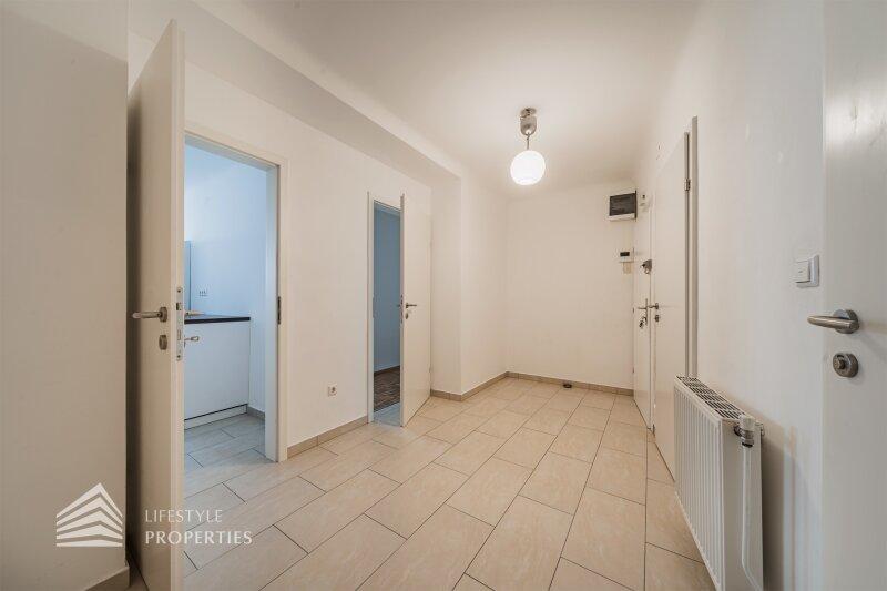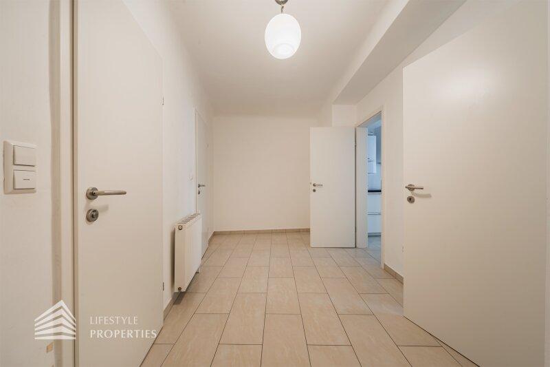 Bei Betreten der Wohnung gelangen Sie in den einladenden Vorraum, welcher Sie gerade in das Wohnzimmer führt. Von diesem können Sie rechterhand das ca. 18 m² Schlafzimmer erreichen. Zurück im Vorraum, von welchem Sie die voll ausgestatte Küche, welche genügend Platz für einen gemütlichen Frühstückstisch bietet, betreten können oder auch das Badezimmer sowie das separate WC erreichen.