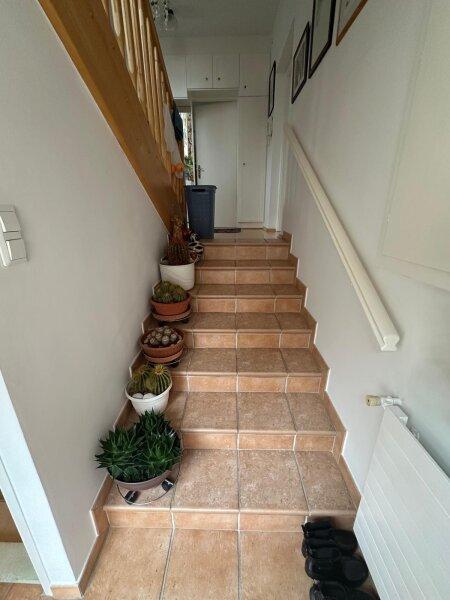 Auch der Keller bietet viele praktische Extras für den Familienalltag: Neben einer Waschküche, einem zusätzlichen WC sowie Heizungs- und Lagerräumen befindet sich hier auch ein stimmungsvoller Weinkeller mit charmantem Sichtmauerwerk. Technisch wurden bereits wichtige Erneuerungen vorgenommen: Die Steuerung der Ölheizung wurde 2024 erneuert, die Kaminsanierung erfolgte im Jahr 2000, dreifach verglaste Fenster wurden 2006 eingebaut und das barrierefreie Badezimmer wurde 2021 frisch renoviert.