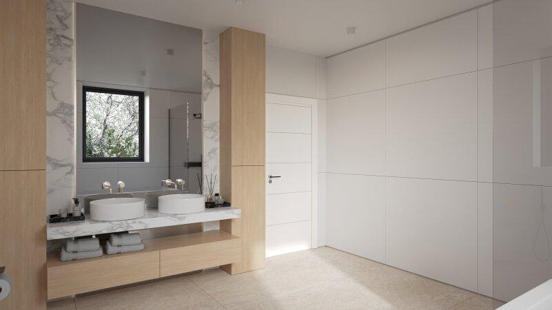 Der offene Wohn- und Essbereich bildet das Herz des Hauses und überzeugt mit viel Tageslicht sowie hochwertigen Materialien wie Parkett und stilvollen Fliesen. Die Fußbodenheizung sorgt für ein angenehmes Raumklima. Das großzügige Badezimmer mit Fenster, Badewanne und separater Dusche sowie zwei zusätzliche WCs gestaltet den Alltag für die ganze Familie komfortabel.