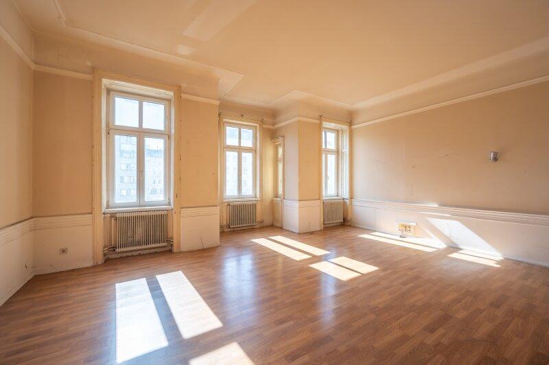 Zum Verkauf gelangen diese ca. 120m² große, sanierungsbedürftige Eigentumswohnung in TOP-Lage des 6. Bezirks.